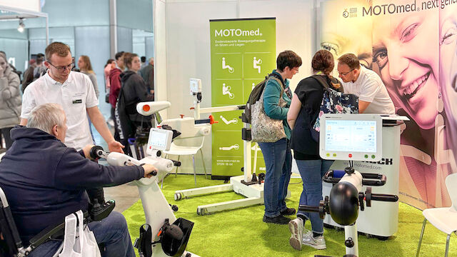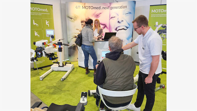 Ein Highlight war die Live-Präsentation des MOTOmed muvi.car, das mit 360°-Lenkrollen den Einsatz der motorunterstützten Bewegungstherapie im Klinik- und Pflegealltag deutlich vereinfacht.